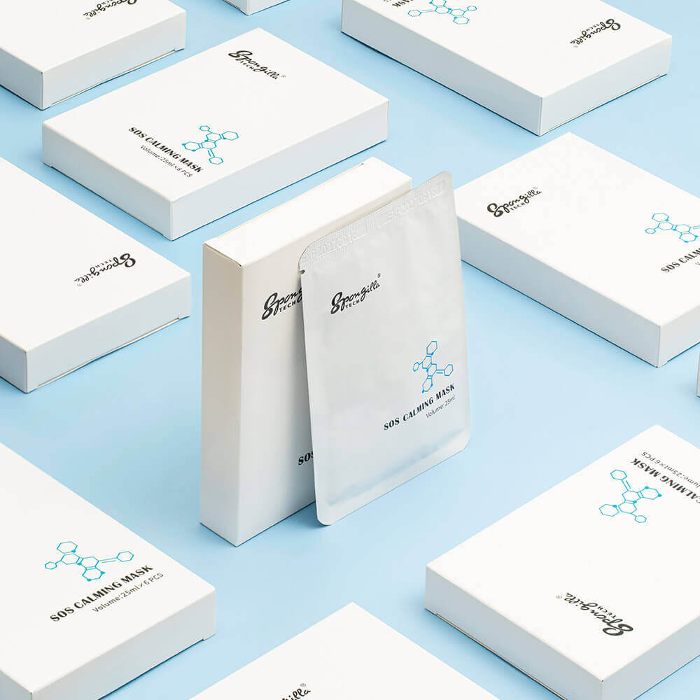 SOS zklidňující maska je profesionální produkt pro regeneraci pleti, který se používá při akutní péči o pleť. Obsahuje peptidy a bylinné extrakty s protizánětlivými účinky. Pomáhá také rychle zklidnit a ochladit pleť po profesionálním ošetření, jako je biomicroneedling/microneedling/chemický peeling, a rychle zmírňuje zarudnutí, pálení, svědění atd. Doporučuje se používat v salonu i doma po dobu 15-20 minut.